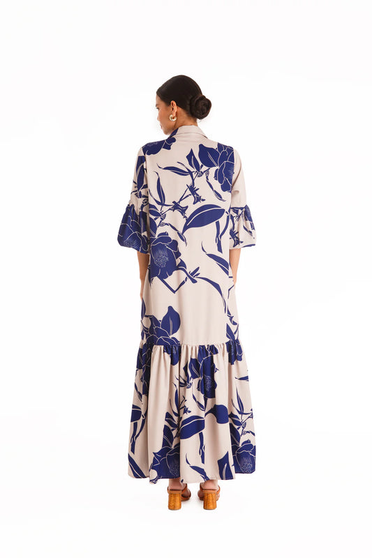 Vestido Leila Lino Estampado Azul