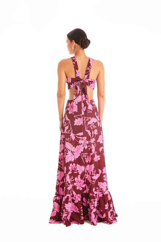 Maxidress Julia Berenjena Flores Rosadas