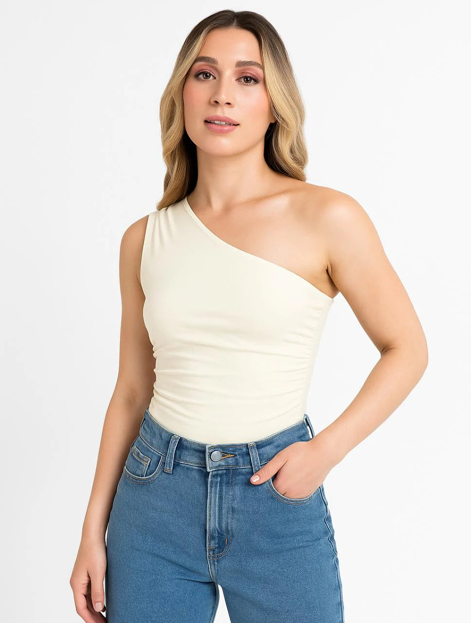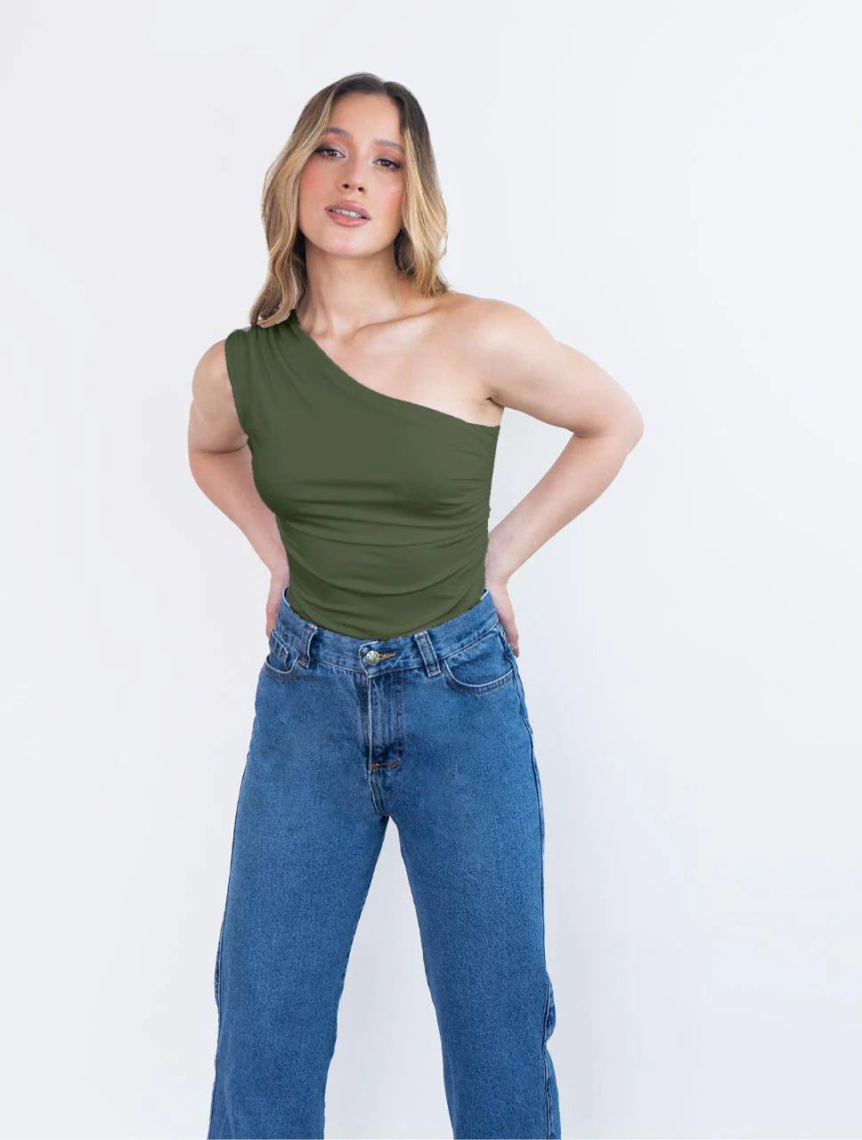 Body Arrecife, asimétrico y diseñado con escote drapeado que aporta una apariencia fresca y elegante. Confeccionado en poliéster y spandex, cuenta con doble capa de tela en la parte delantera y trasera, panty tipo tanga y gafete graduable. Hecho en Colombia de manera responsable por mujeres.