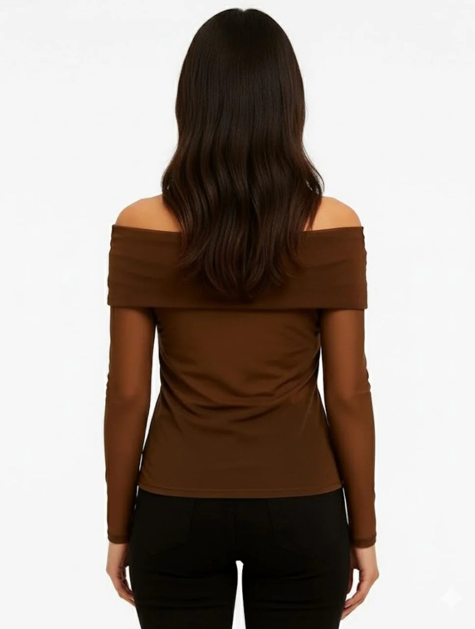 La blusa en malla The Promise tiene un escote estilo bandeja que resalta la feminidad a través de su diseño ceñido y moderno. Su tejido ligero, fresco y transpirable ofrece comodidad en cualquier clima, mientras que las mangas largas aportan equilibrio y estilizan la figura. Confeccionada en poliéster y spandex, mantiene su forma y suavidad sin arrugarse.