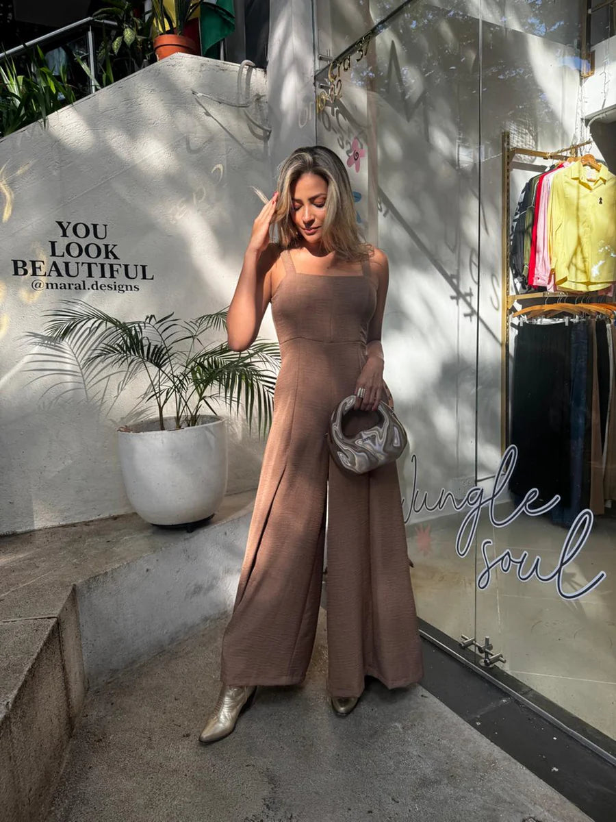 El Enterizo Conde es la prenda ideal para mujeres que aman verse sofisticadas sin esfuerzo. Su diseño fluido, con corte amplio y silueta estilizada, resalta la figura mientras brinda total libertad de movimiento. Confeccionado en una tela liviana con textura sutil, su color aporta frescura y un toque moderno que nunca pasa desapercibido. Es perfecto para llevar tanto de día como de noche, con sandalias, tacones o incluso tenis para un look más casual.